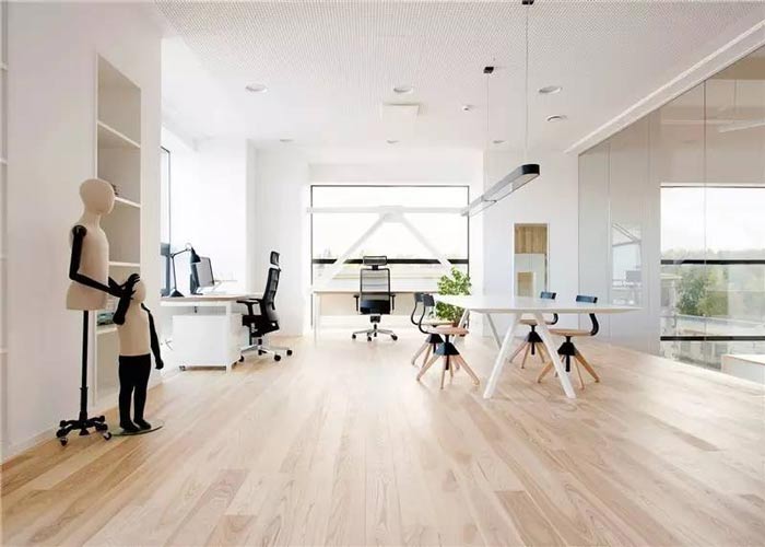 童装公司办公室办公区设计:由于办公工作的特殊需求,设计师按照窗户的位置对办公工位进行排列,每个人一个位置,谁都不会受到打扰,清新的空气、温暖的阳光让人置身于温暖的怀抱之中。