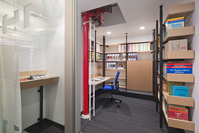 经理办公室的设计:经理需要负责的是整个企业的正常运作,而资料又是一个企业业务的直接证明,故此设计师在于经理的交流中,了解到经理希望可以将办公室与资料室融为一体,这样可以方便经理的日常办公,同时整个空间显得更有书香气息,让人在这样的空间中更加安宁。