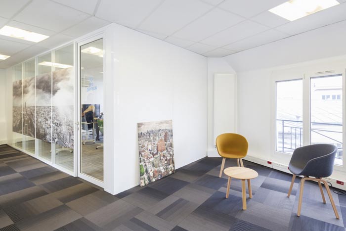 空气环保公司办公室交流区设计:此处空间本身是不规则的,所以无法将其改造成使用空间,但是设计师也不忍将其荒废,估计利用软装的便捷与其进行搭配,目的就是希望打造一个随时可以交流的空间。