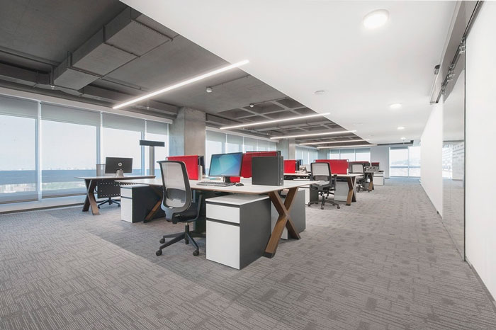 安全合规性:金融行业需严格遵守消防规范,确保安全通道畅通,选用防火阻燃材料,强弱电布线需符合金融级数据安全标准。