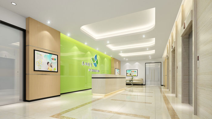 前台的设计,设计师在色调上采用:白色、淡白、浅绿色,前台色彩之间的搭配,其中尤以浅绿的清新、亮丽为主,让大家置身其中感受到轻松与快乐。