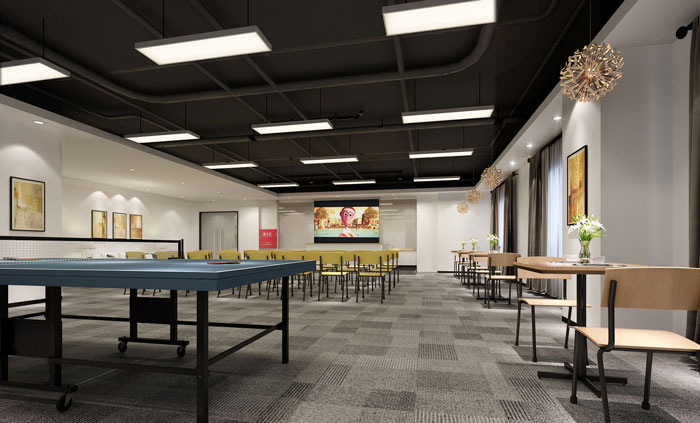 休息、娱乐区域的设计,空间中充满想象的现代符号抽象画,以及不同形状与不同颜色的软装,即丰富了线条感、层次感,在同时又塑造了现代化的办公空间。