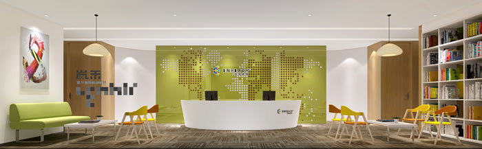 前台的设计:设计师在设计的时候,在对空间采用聚焦的同时,对局部采用软装进行点缀与设计,设计师希望以聚焦的手法来彰显学院品牌的展示,同时利用软装的点缀在不影响整体空间的前提下,为学院打造多元化的使用空间。