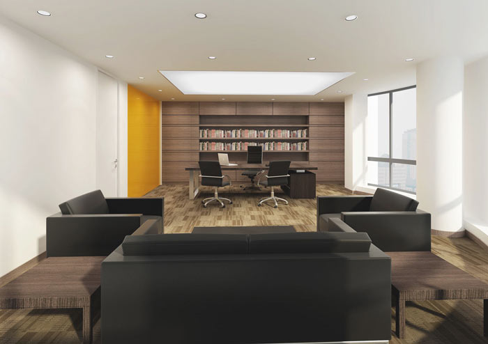 总经理办公室的设计,设计师在设计的时候,将空间划分为办公区域、接待区域,不管如何变化设计师的目的就是将极简进行到底,设计师希望将采光、简洁有效的引入空间,让总经理在室内室外交融的空间中办公,不断的提升自己。