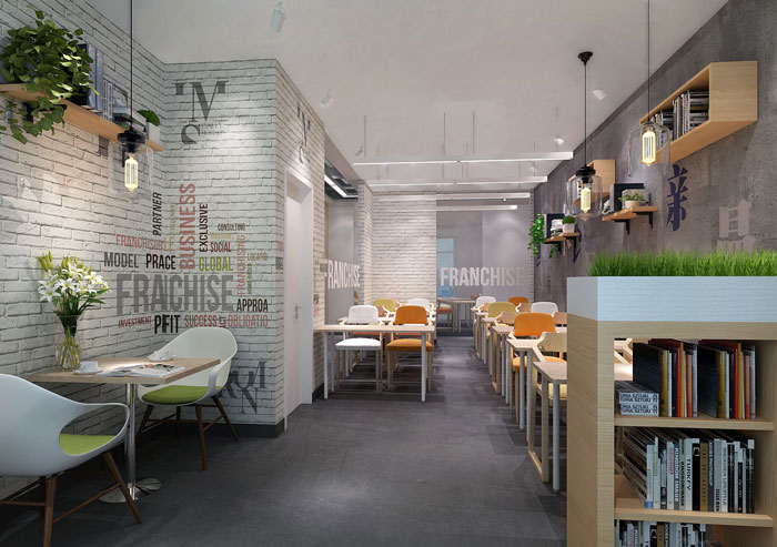 本案为英语教育办公室装修设计,设计师的设计主要结合企业的企业文化,让孩子在创造中学习,在学习中创造,这是本次的设计理念也是业主对于空间的追求。