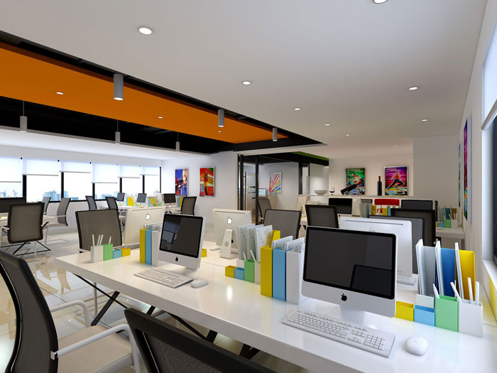 办公区域的设计,设计师需要在有限的面积中放入符合企业的办公工位,在设计的时候,设计师采用横竖横错综摆放,实现空间的最大化。