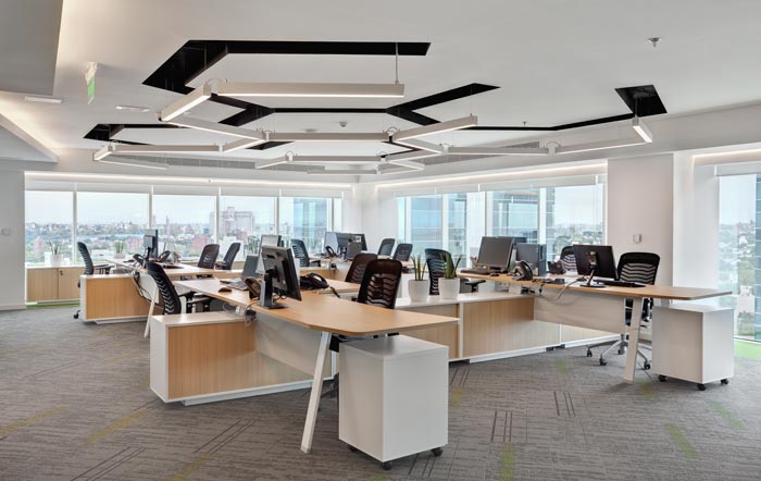 办公区域的设计:设计师在设计的时候,采用不规则的办公布局,在设计师看来这样的设计可以各取所长、各补所短,在开放空间布局的同时,为每一个员工打造一个属于自己的私人空间,不规则所打造的办公空间,让空间充满了活力。
