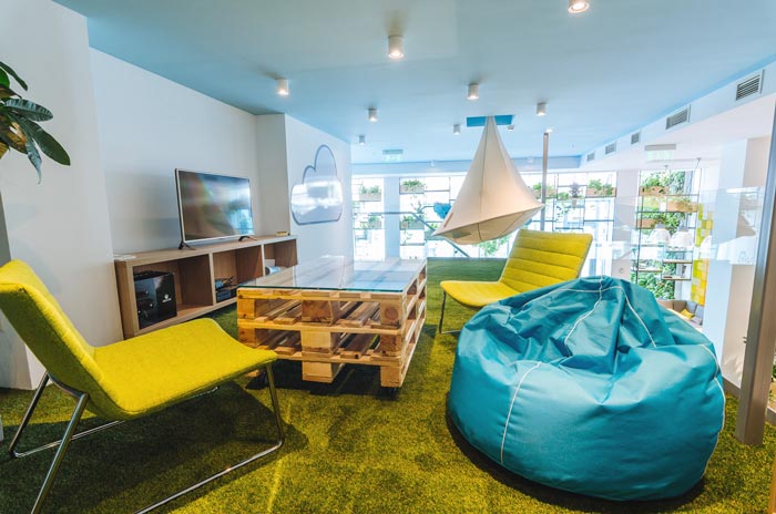 旅游门户办公室接待区设计:设计师在设计的时候,将休息、娱乐、观赏、自然融入其中,在设计师看来此时的客户更需要的时候一些娱乐活动,设计师希望让客户在此处仿佛置身于大自然一般,惬意、舒适、安逸。