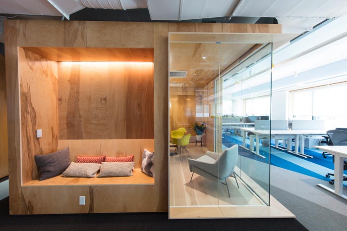网络公司办公室茶水间设计:设计师在设计的时候,将其与休息区域相融合在一起,设计师希望员工可以在此处休息、交流、玩耍,光源透过透明隔断射入室内空间,暖洋洋的气氛充斥整个空间。