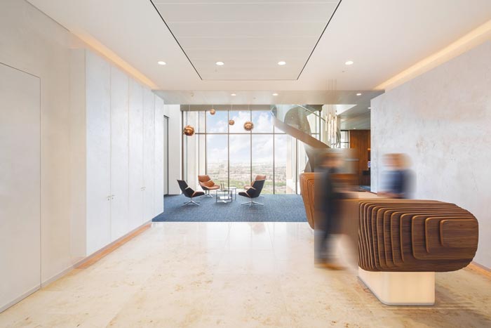 办公区域的设计:此处给人的感觉就是两个字——简单,这是设计师考虑到企业的属性给出的最佳方案,在设计师看来律师在平时要处理很多案件,故此精神会时常的保持高度的紧张,设计师希望给他们一个简单的空间,在这样的空间之中,律师可以建立自己的脚步,在享受中完成工作,这样办事效率反而会提升不少。