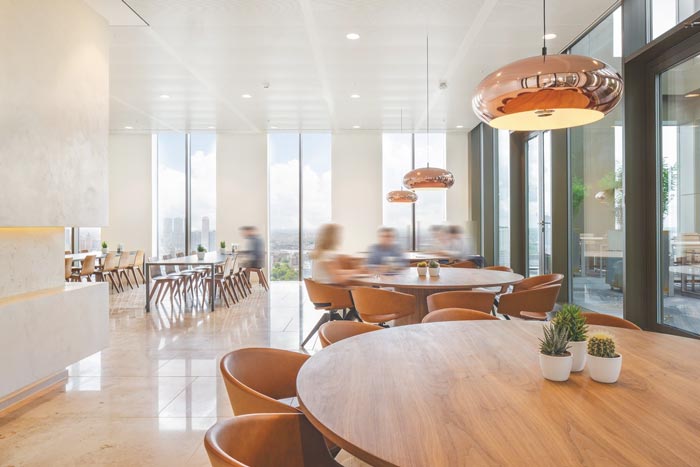 茶水间的设计:设计师在设计中,在此处动感模糊了几个人影,目的就是为了让人可以直观的了解到空间的效果,律师平时也可以在这里办公,在这里讨论案情,与客户在这里彼此交流,在设计师看来任何事都是急不来的,设计师需要做的就是为他们营造一个简单的空间,让他们可以在复杂中滤清自己的思路。