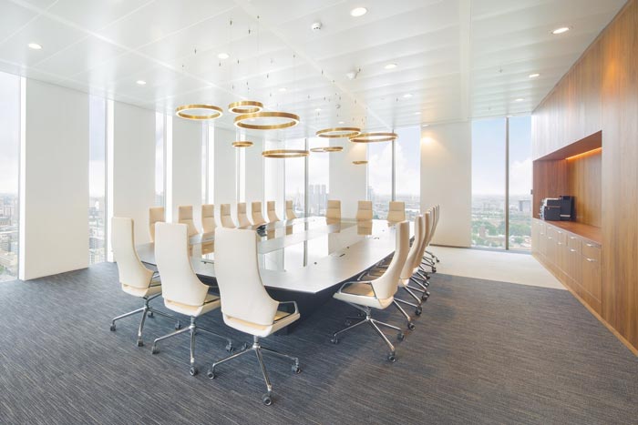 会议室的设计:此次四周几乎都是通透的,这样的空间仿佛把人的压力都抽走了一般,人的思绪有时候就如室外的风一样,让人捉摸不定,但是当我们有一颗稳定的心之后,我们感受到的就是内心的安静,在此处给我们的就是这样的感觉,在这里仿佛什么都不在重要,思绪一下子变得轻盈起来。