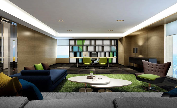 接待区域的设计:设计师在设计的时候,将其安置在大厅与办公区域之前的小空间中,设计师希望将空间合理的进行运用,同时进一步加快各个区域之间的交流与联系,进一步完善企业办公的各个流程,在此地客户可以感受到企业的理念,对企业有更进一步的了解。