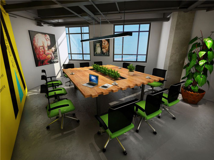 会议室的设计,设计师在设计的时候,采用居中的设计手法,居中不是简单的居中,而是让空间所有的全部聚集在中间部位,为会议的开展提供优质的空间环境。