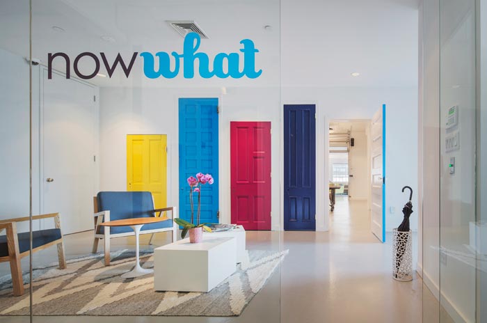 接待区域的设计:此处与其说是接待区域不如说是进门区域,在设计师实地考察空间的时候,就发现以接待为第一参照物会有更多发挥的空间,接待桌、接待椅、地毯、鲜花、杂志给人的感觉是那么的文静,让人的心从忙碌的工作中平静下来,黄、蓝、红、紫颜色各异的门,可以挑起人的好奇心,想要去探险那未知的区域。