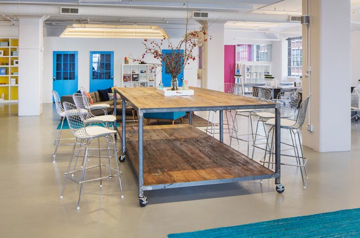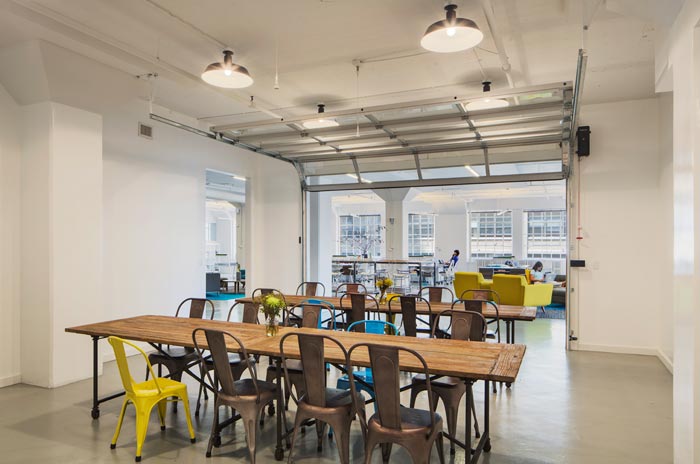 交流区域的设计:此处的设计与会议室的设计有些类似,由于此处位于办公区域的后方,设计师希望让空间更加多样化,一个小小的轱辘就解决了这个问题,在使用时直接推出来,在使用后直接收起来,方便、快捷,同时也为企业预留了更多的活动空间。