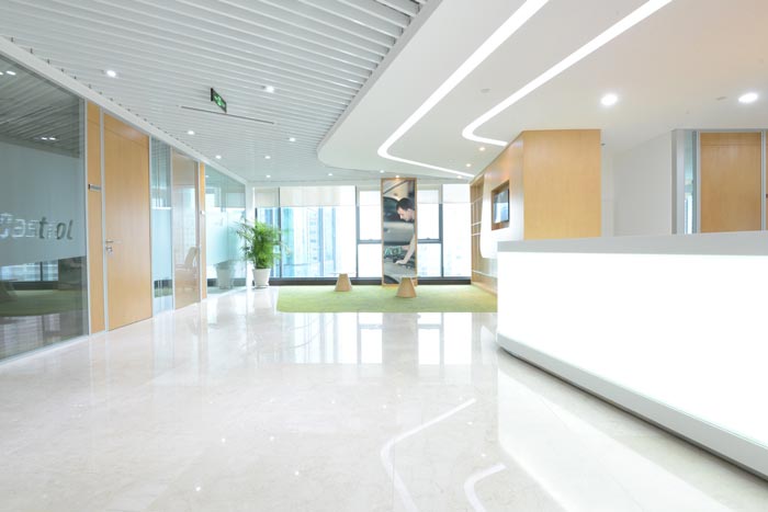 接待区域的设计:通过前台的转角进入室内,直接引入眼帘的就是成排的休息椅,此处加强了对客户的重视,因为在设计师看来客户不仅仅是客户,也是企业的衣食父母,需要从客户进入就要给客户一个好的印象,只有如此企业才能得到长足的发展。