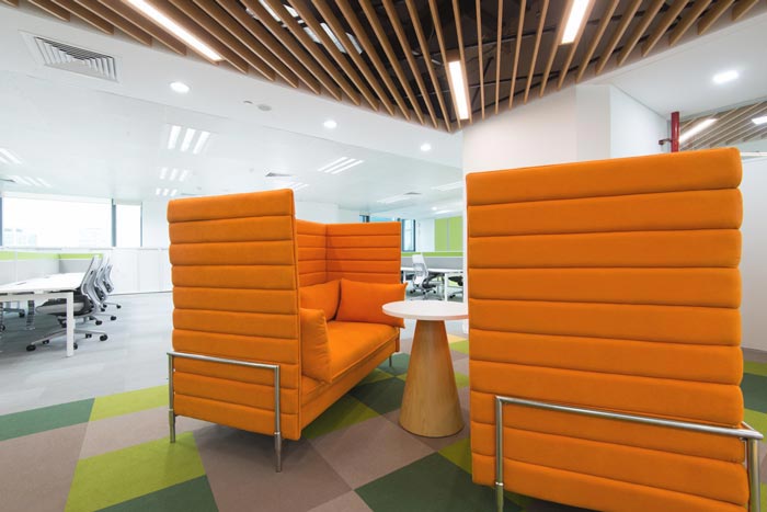 办公区域的设计:此处安置了企业大部门的员工,故此占地面积十分可观,在办公空间的设计中,设计师十分留意每一个工位的设计,因为在办公中最怕的就是引起误会与不平,故此彼此的平衡十分重要,也是设计师必须需要注意的,如此才能打造一个和谐的空间。