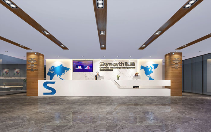 前台的设计,设计师采用聚中的设计手法,将前台固定在空间中央,一则起到强调的作用,二则利于居中的手法将企业形象加以延伸,以达到多次强调的作用。