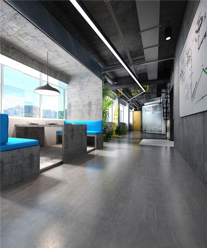 整体办公空间的设计:设计师将所有的区域安置到一个特定的区域,以此做到工作的时候不受干扰,工作与休闲分离的效果。