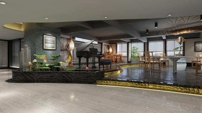 走廊的设计:此次是从前台进入室内的过渡区域,设计师在设计中除了保证动线的畅通之外,在其中加入了花草和绿植,目的就是希望为空间带来自然的气息,中式本身就与自然想合,在加上自然的宠儿(花草)、禅意的佛像,希望在客户的心中留下一丝涟漪。