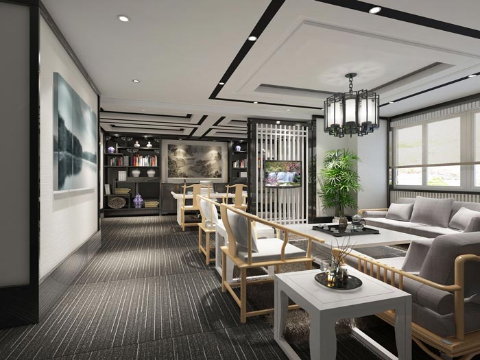 本次项目为控股公司总部办公室装修设计,设计师首先要做的就是与客户进行了初步的交流,在交流的过程中设计师了解到客户希望设计可以采用新中式,设计师在对空间实地考察之后决定在新中式风格中加入禅意风,目的就是希望给人以空灵之感、禅意之意境,做到实与虚之间的相互协调。