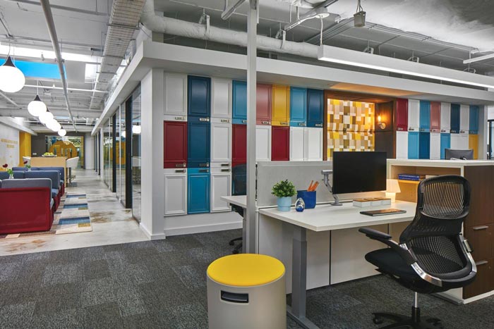 独立办公区域的设计:这样的办公区域主要是为哪些解决专家提供的,因为在设计师看来任何事都不是轻易可以解决的,需要的是我们静下心来,但静心往往是最难的,这也是设计师设计休息区在办公区附近的原因,静思在加上分析如虎添翼,在设计上为解决专家提供裨益。