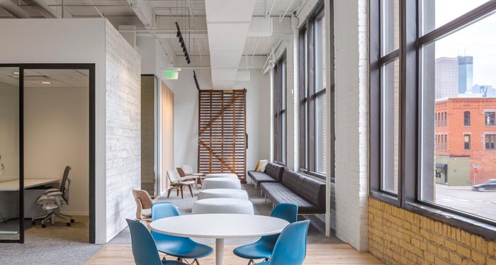休息区域的设计:此处主要是为员工准备的,当然也可以做为与客户的相互交流,设计师希望打造一处没有压力、没有焦躁的空间,在这里喝着小茶、被暖阳阳的阳光包围着,两两相坐相互攀谈着,远远望去一片勃勃生机的景象,在此处彼此之间如多年未见的朋友一样交谈。
