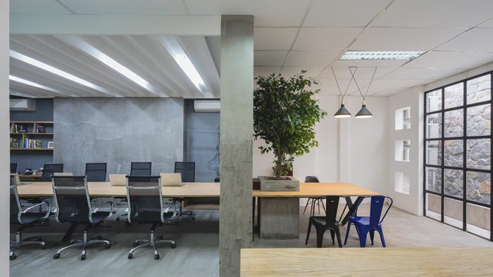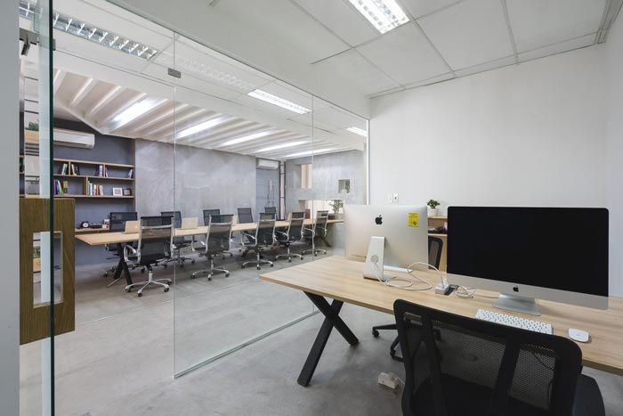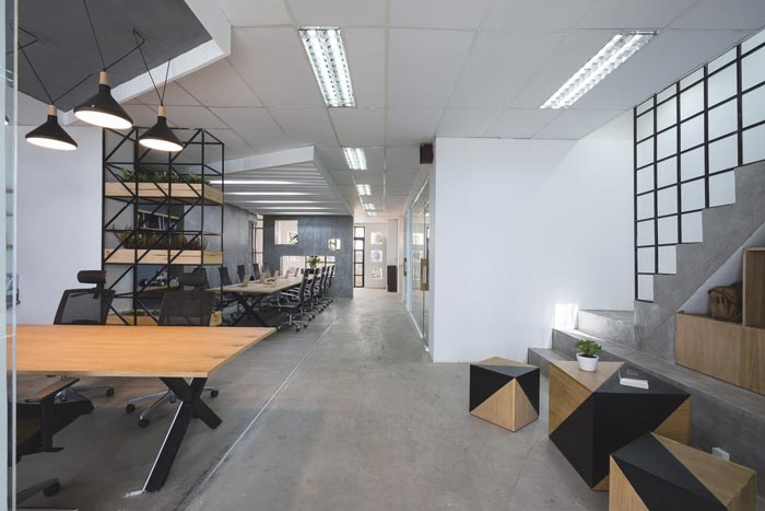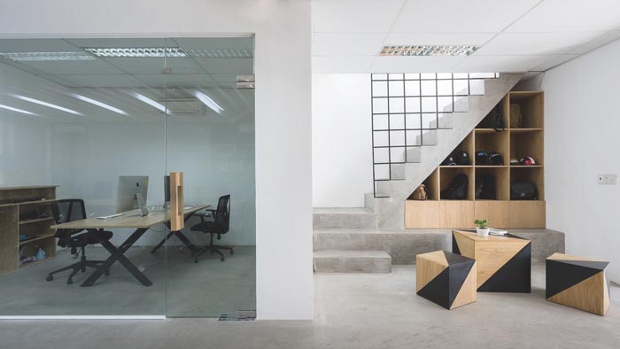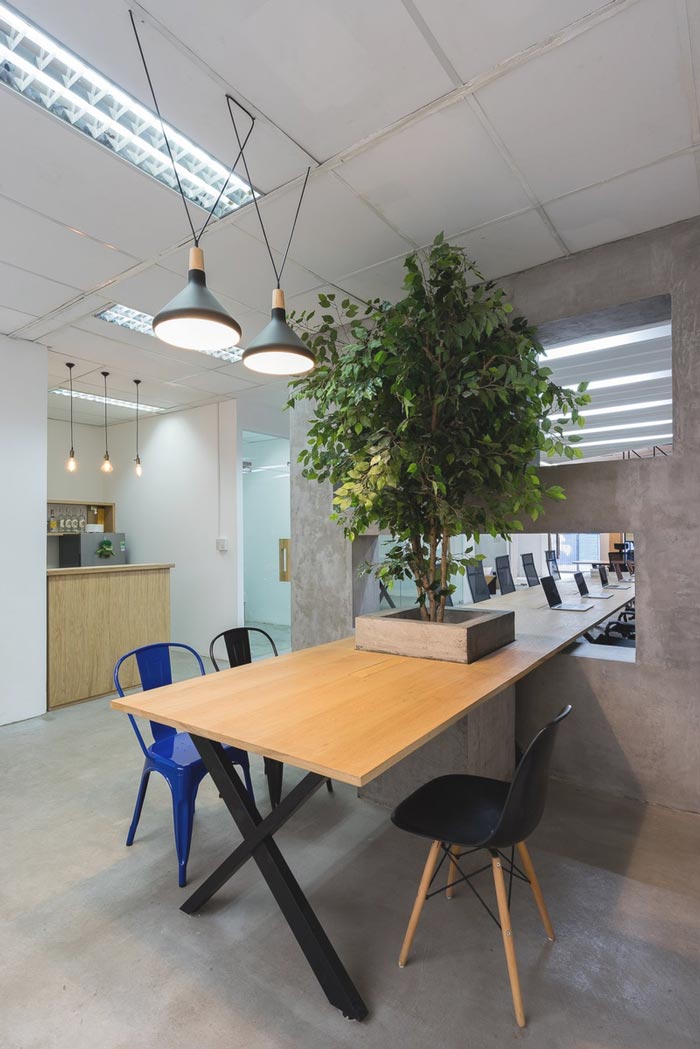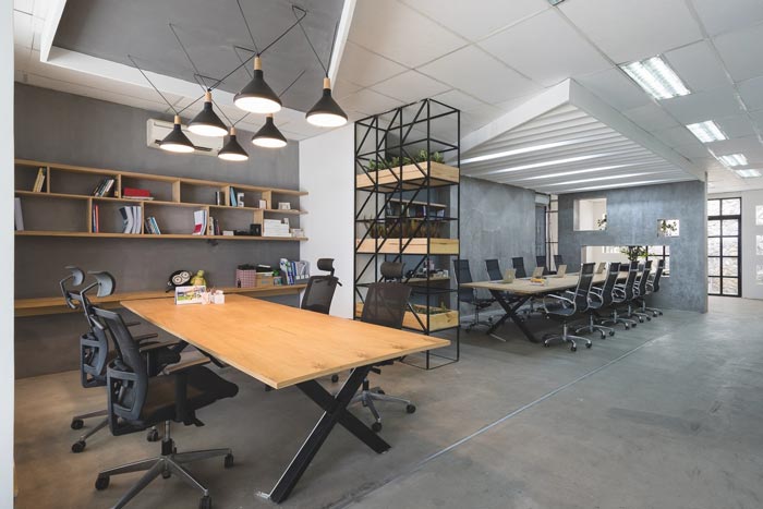 办公室办公区设计:此次的设计与其他的不太一样,因为空间中有两个办公区域,一个为开放的办公区域,一个为封闭的办公区域,设计师希望员工可以自己选择自己的办公场所。