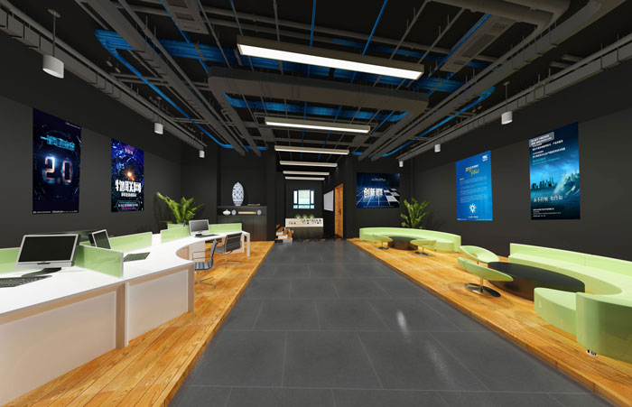 在开敞办公区里面,设计师采用了一分为二的方式进行设计,既让员工们的工作交流变得更加顺畅,又有效的节约了使用面积,还让空间显得更加活泼、充满朝气。