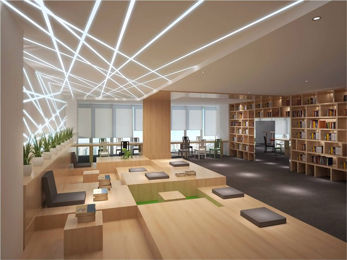 办公区域的设计,设计师在设计的时候,参考咖啡厅对空间进行设计,空间主要分为办公区、休息区、读书区,三区合一使得员工不仅在工作可以有所进步,在工作之余对自己的品德也得以提升,这是宝贵的财富。