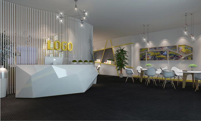 在事务所办公室前台的设计上面,设计师首先考虑的就是企业的形象,因为对于事务所来说,客户的第一印象非常重要,故此设计师在设计的时候在保证空间的完整之外,形象的设计也是其中的重点。