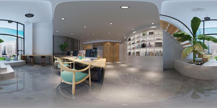 700平方设计事务所办公室前台:在设计的时候,设计师采用猫眼的模式对空间进行设计,以此让客户在进入空间后对企业内部有一个直观的认识,前台在空间中被设计师隐藏,首先空间与空间的自然转变。