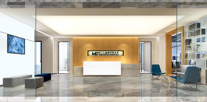 600平方律师事务所办公室前台:在设计的时候,设计师在前台空间的设计中以聚集为先,保证空间内部的中性与动线的简洁,让客户可以感受到空间的简洁、明了,在这样的空间中更容易对企业产生好感,在不断的合作当中产生信任感。