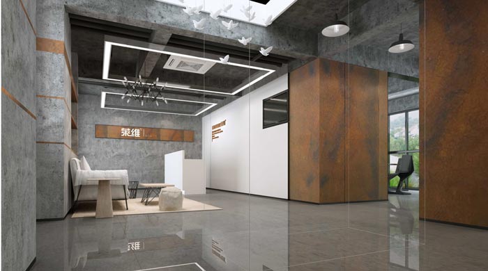 300平方服装公司办公室前台:在设计的时候,设计师根据空间急切需要设置一个个区域的时候,最后设计师采用集装箱式的设计,将一个个空间以集装箱为隔断分离每个空间,前台区域自此形成,表现了设计师对于空间的精准定位与软装搭配的极深造诣。
