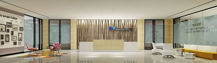 在服装公司办公室前台的设计中,设计师主要根据空间本身的特点,加上企业自身产品的特点,设计师将他们相互融合之后在前台空间设计中表现出来,以此为企业的发展做出做适合的前台空间。