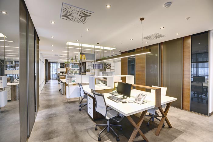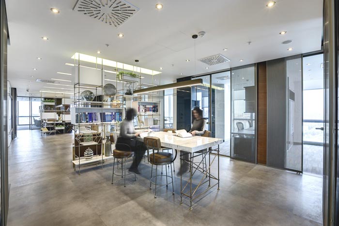 俯视整个总经理办公室的设计:可以看出整个空间在设计师的设计手法之下变得越发精致,每一处都宛若天成,每一处与每一处的配合都是那么的契合,当窗帘拉开的那一瞬间,阳光瞬间将整个空间照射的一览无余,一览无余的设计、功能齐全的设计,两个看似矛盾的场景同时出现在一个空间,不得不让人叹服。