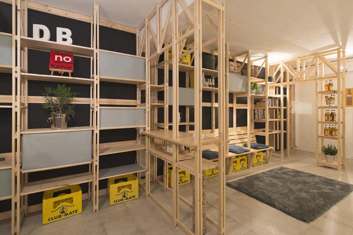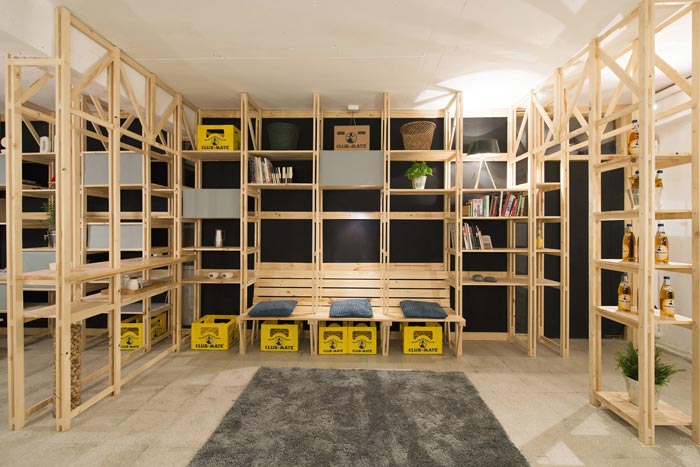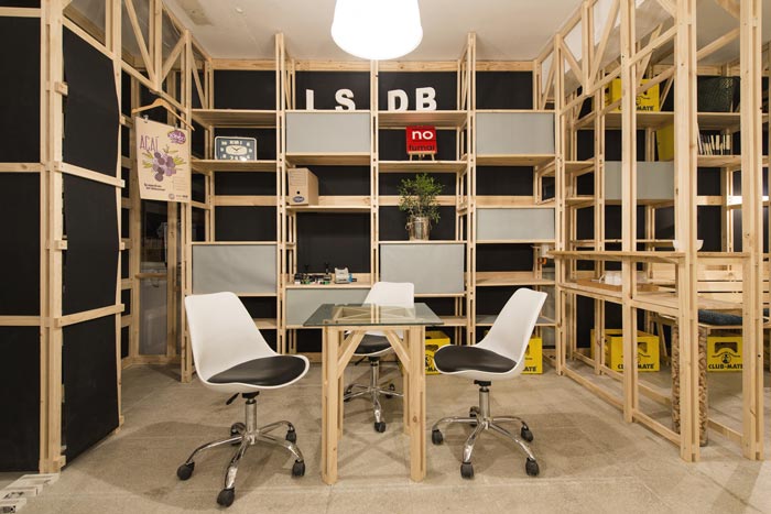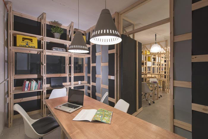 交流区域的设计:设计师在设计的时候,通过不断的尝试与重组,最后决定利用软装方便移动、成本较低、不占空间的优势,将其安置在一个角落的凹处,这样的设计更保留了区域的活性,让此处可分可合,使用时三两下就将其搭建成功,不使用时三两下就可以将其收起,方便、快捷。