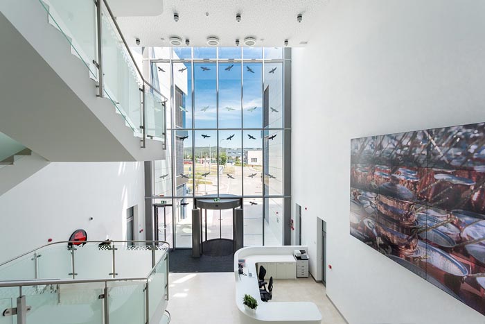 前台大厅的设计:此处给人的第一感觉就是大气、阳光,玻璃幕墙自上而下,将光透进空间的每一处区域,这样设计的初衷就是为了让客户感受到企业的实力,正所谓佛靠金装、人靠衣装,万物因为光而生长,设计师希望企业在光的见证下不断的成长。