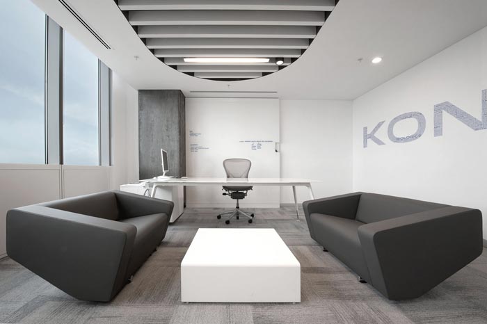 总经理办公室的设计:此处仅有20平方,但是在设计师的设计手法之下,一切都变的不同,白色让整个空间在视觉上向外延伸,家具的摆放既简单又实用,兼顾了办公与接待,在设计师的眼中,设计师本身就是化繁为简的一个过程,设计师要做的就是将其简化到极致。